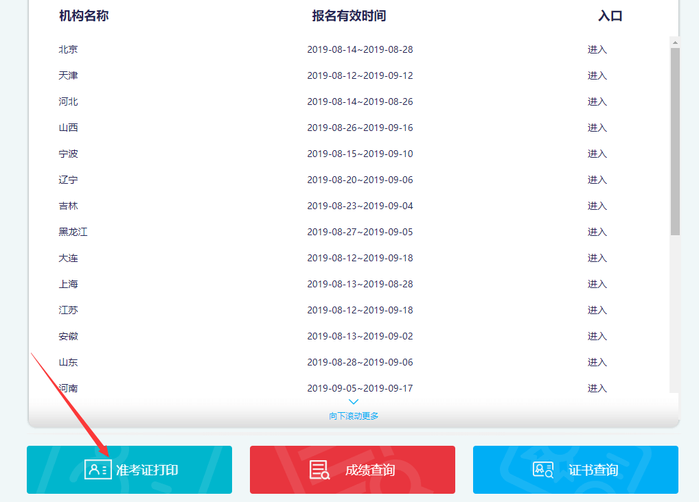 第三步:進(jìn)入報名入口頁面后,點擊準(zhǔn)考證打印。